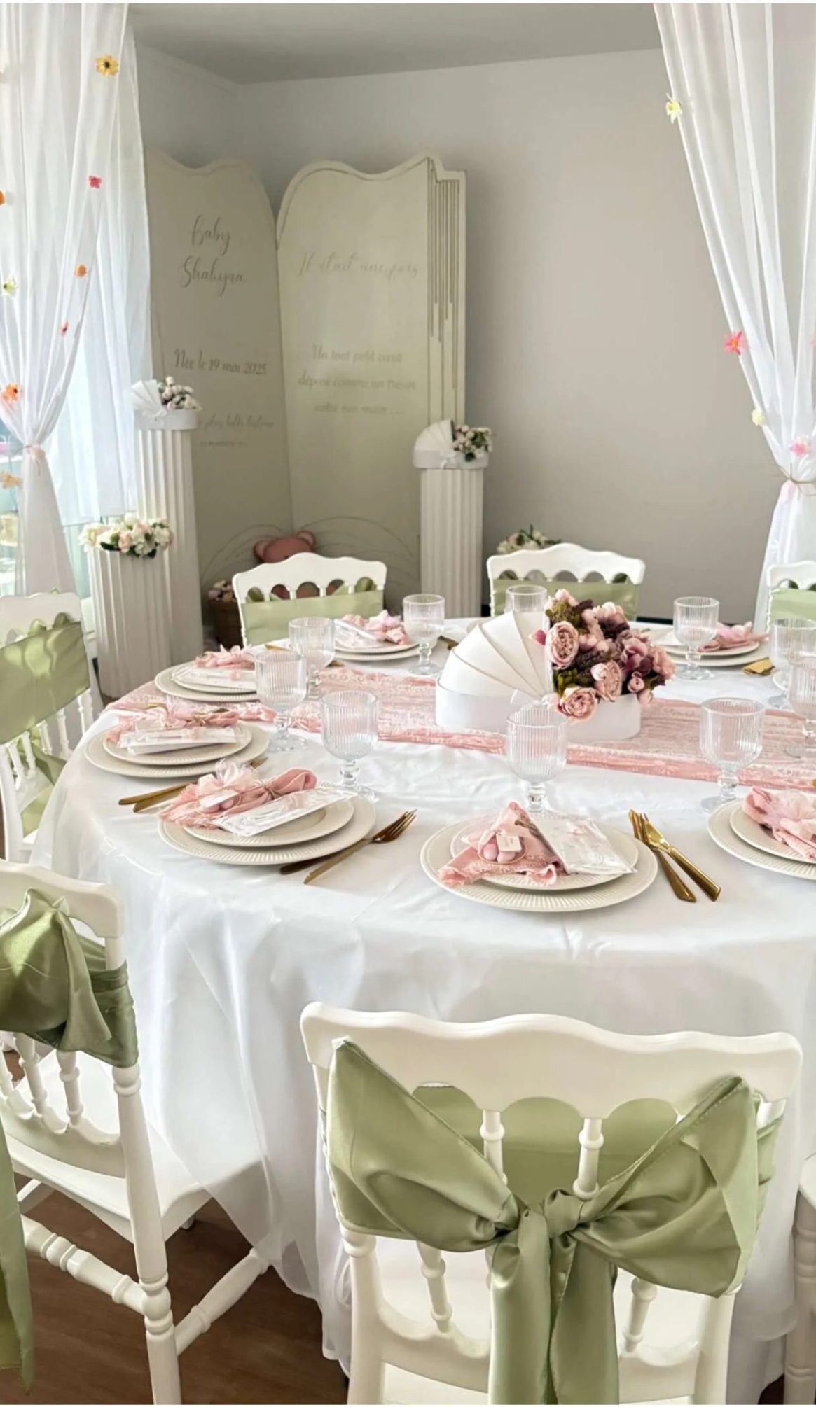 👶 La fête de naissance est un moment rempli de tendresse et de joie, une belle occasion de célébrer l’arrivée de votre bébé entouré de vos proches. Chaque espace est pensé pour refléter la douceur et la beauté de cette journée unique.