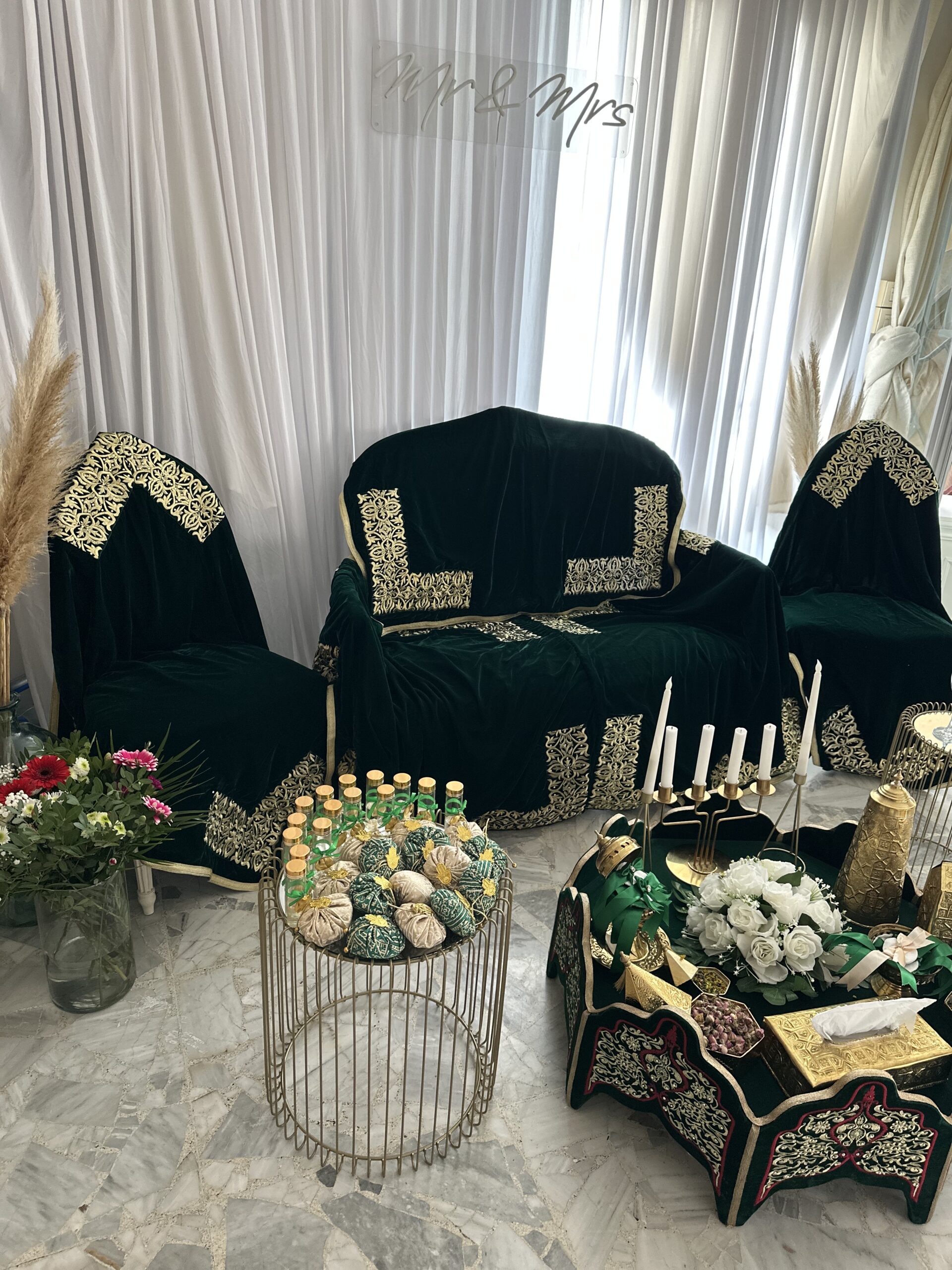 ✨ Le coin de la mariée devient le centre de la fête, sublimé par des voilages, des fleurs et des détails scintillants. Un espace pensé pour refléter la grâce et la symbolique du henné, tout en conservant une touche moderne et personnalisée.
